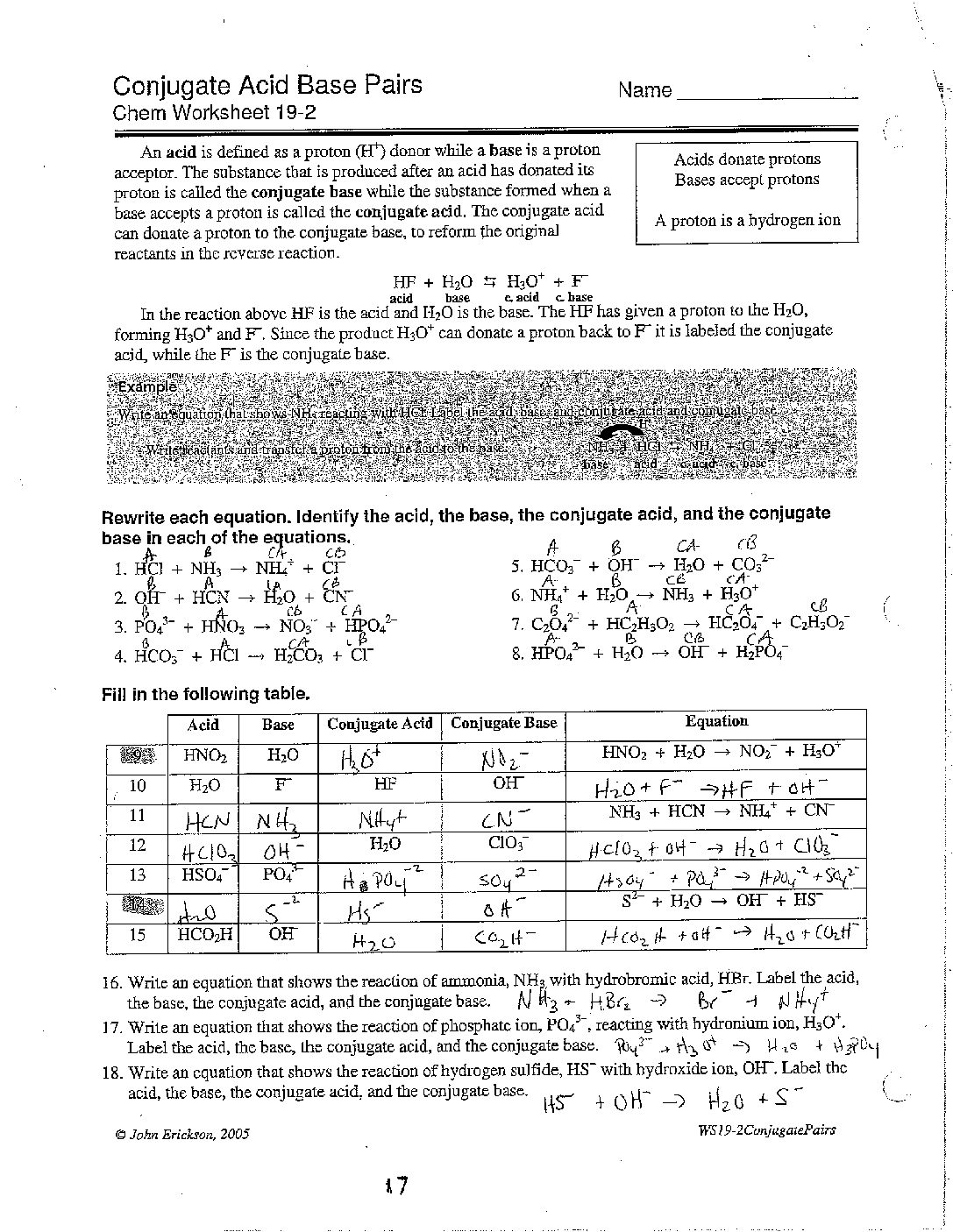 Acid And Bases Unit Worksheet With Answers Exercises Chemistry Docsity
